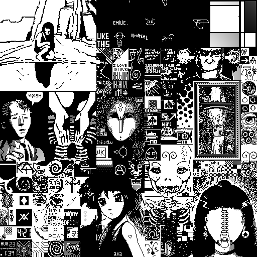 Notes: Most software plays these animated GIF files a bit slowly because they contain thousands of frames. The Linux program xanim plays them well. The whole (time-lapse) retrospective history of the work can be exhibited as a projection. [Help]